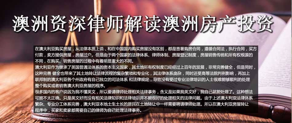 在澳大利亚购买房屋,从法律本质上说,和在中国国内购买房屋没有区别,都是签署购房合同,遵循 合同法,执行合同,买方付款,卖方提供房屋,房屋过户。但是由于两个国家的法律体系、律师体制、房屋登记制度,房屋销售传统和所有权根源的不同,在购买、 销售房屋的过程中有着明显重大的不同。